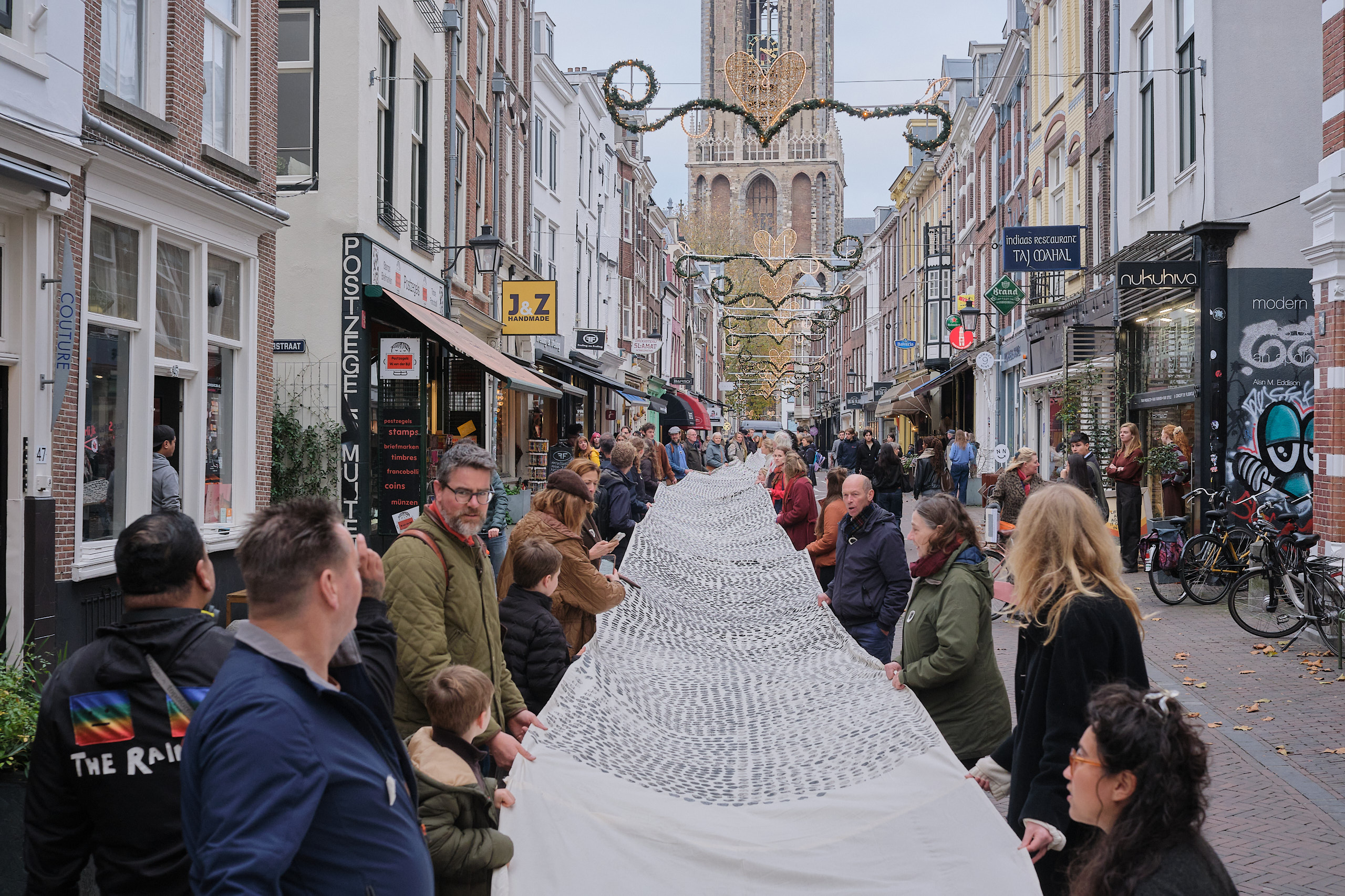 In de campagnemaand van 10-10 (Wereld Dakloze Mensen dag) en 11-11 (Sint Maarten) werd dit doek hartje Utrecht afgemaakt en uitgerold. Elke week was er een stempelsessie in en rondom de Domkerk.