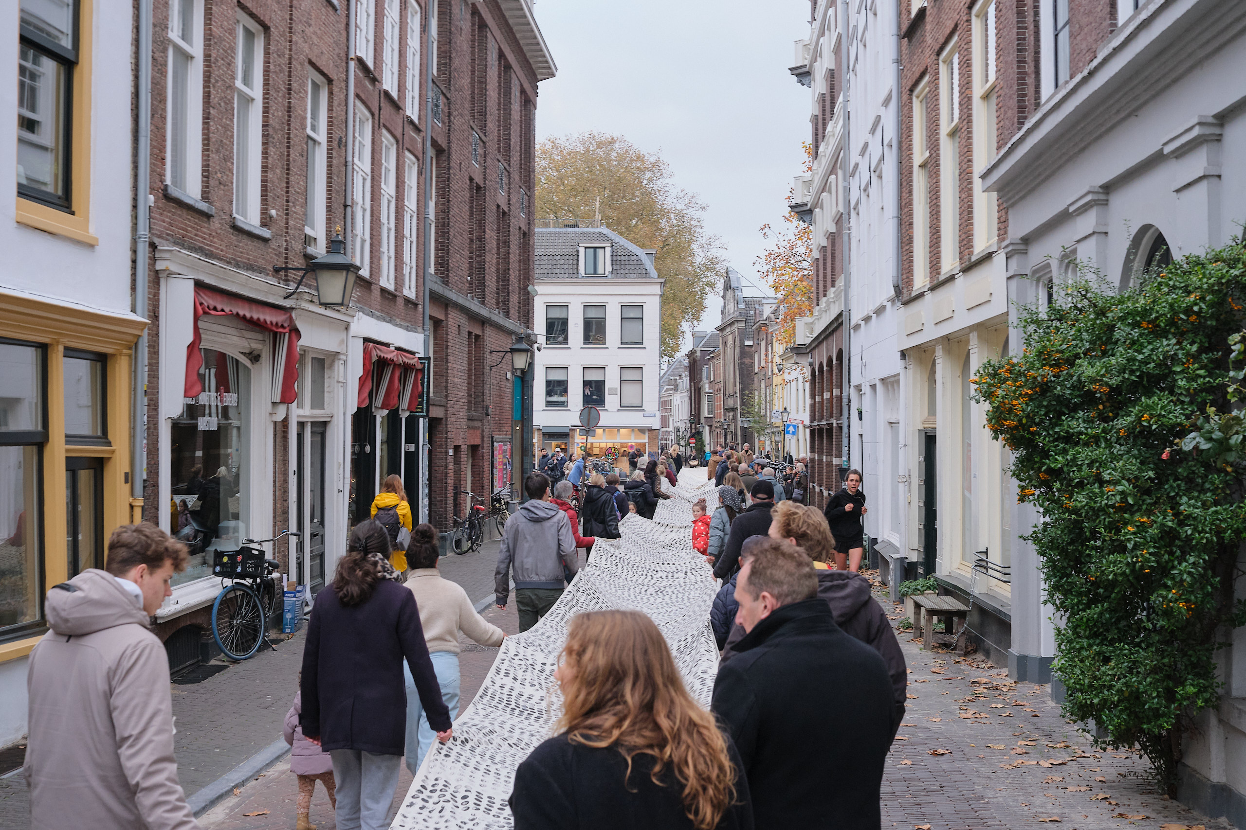 Kunstenares Daisy Ranoe droeg op Sint Maarten samen met tientallen vrijwilligers een doek van 60 meter door Utrecht. 33.000 stempels zijn er op het doek gezet om aandacht te vragen voor dakloosheid. Elke stempel staat symbool voor een dakloos persoon in Nederland: “33.000 unieke verhalen”. Toen het project begon waren het nog 31.000 geregistreerde daklozen en nu zijn het er al 33.000.